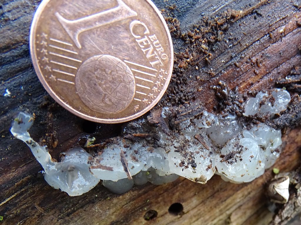 Fruchtkörper: gelatinöse klumpenförmige Masse, transparent bis schmutzig-trüb-weißlich