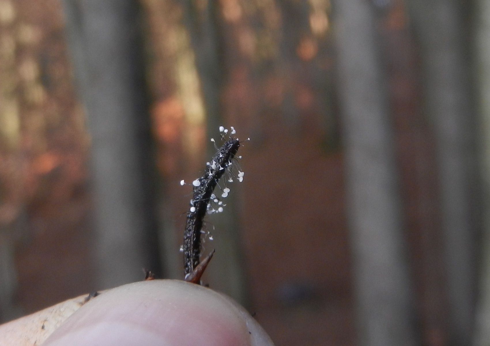 [font="Arial"]Fundort: ca. 550 müNN. ca. N50, O12, an einer Fichtennadel, die mit stark zersetztem Holz verdeckt in einem kleinen Hohlraum steckte