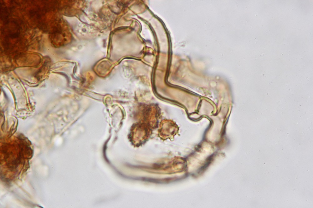 In Lugol ist keinerlei Reaktion gewesen und die Hyphen waren auch nur Teilweise (meistens dickeren Hyphen) an den Septen mit Schnallen versehen.
