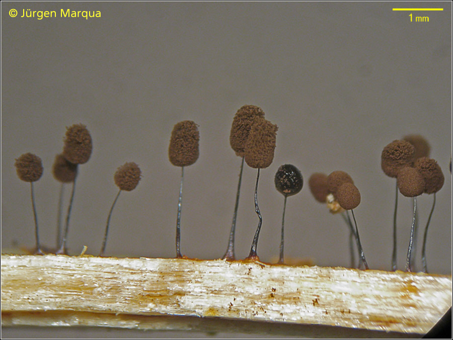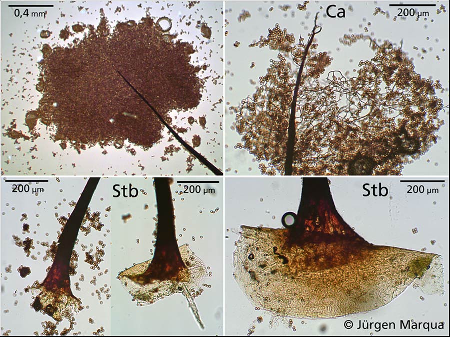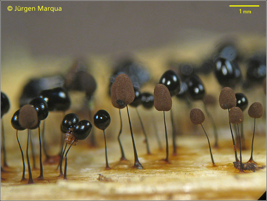 ich habe die Kollektion mal als C. laxa bezeichnet, die Sporocarpe waren alle nicht höher als 3 mm und das Capilltium ist meinem Empfinden nach nicht so dicht, wie bei C. nigra. Die Columella teilt sich an der Spitze in drei vier stärkere Stränge und geht dann ins Capillitium über. Sporen 10-11 µm im Durchmesser. Was meint ihr?