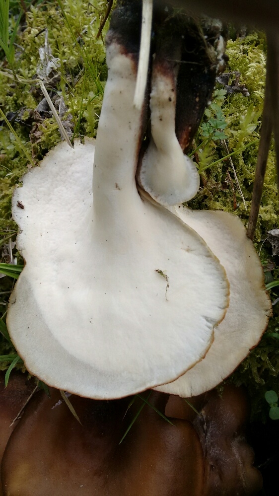 An der Stielbasis ist viel mehr vom Umfang schwarzbraun und viel weniger weiss.