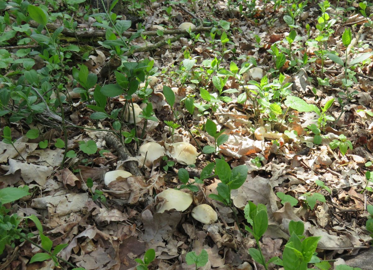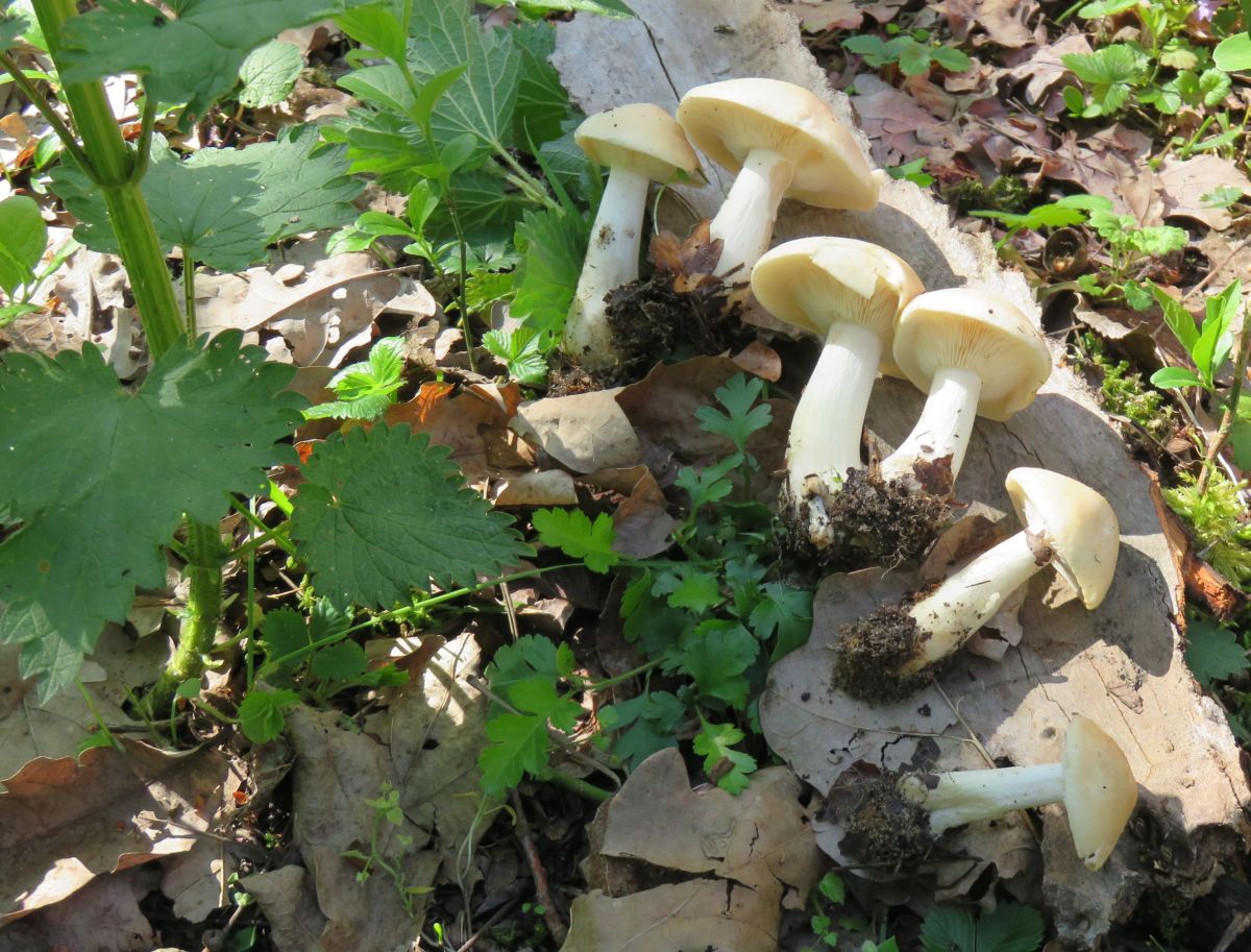 Zum Glück wachsen die Maipilze sehr gesellig. Heute habe ich an nur fünf oder sechs Stellen, die alle ziemlich nah aneinander lagen (bis 50m auseinander) richtig viele Pilze gefunden.