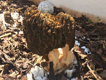 ich habe gerade beim Blick aus dem Fenster ein paar Pilze erspäht. Bin dann rausgegangen um sie mir genauer anzusehen. Für mich als Laie scheint es sich um Morcheln zu handeln. Der Standort ist sonnig. Wie man erkennen kann wachsen die Pilze auf Holz mulch. Weitere Angaben kann ich leider nicht machen, da die Pilze auf einem für mich nicht erreichbaren Mauervorsprung wachsen und nur von oben fotografiert werden konnten.