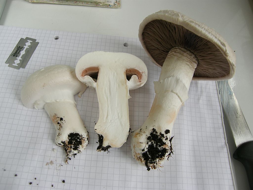 Meine Bilder des Zuchterfolges sind nicht so überragend geworden, aber was mir sehr gut gefallen hat: Bei ganz frisch geernteten Zuchtchampis kann man auch endlich mal die Rotfärbungen des Fleisches bei Verletzungen beobachten. Das funktioniert bei gekauften Champis nicht mehr.