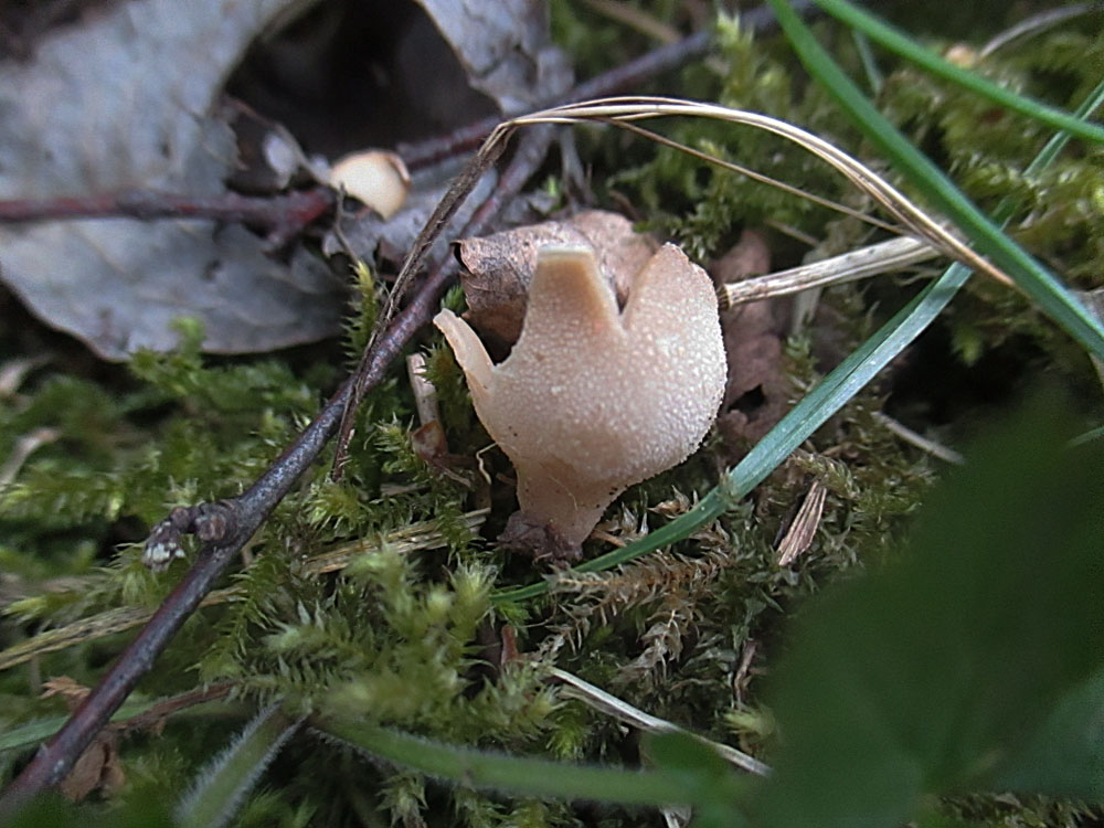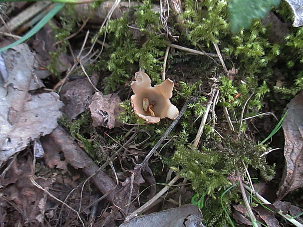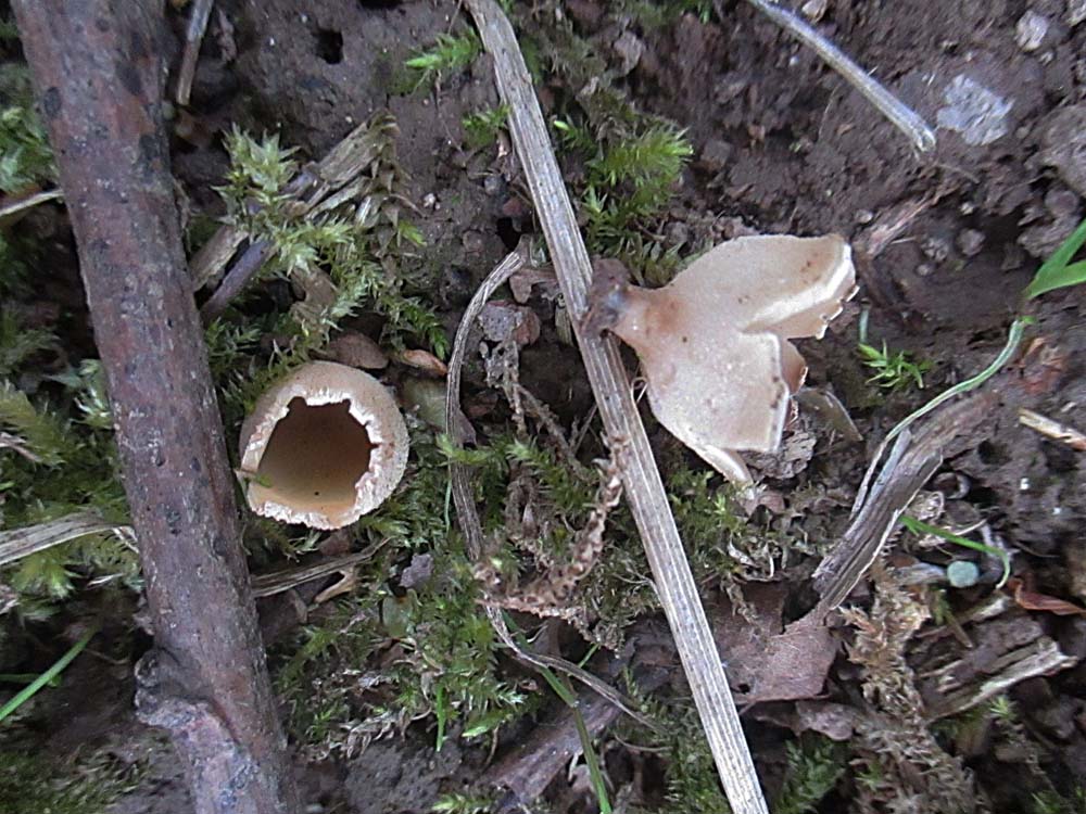 Dann gab es noch einen Becherling in der Größe von Anemonenbecherlingen (Dumontinia tuberosa), Vielleicht Peziza vesiculosa???