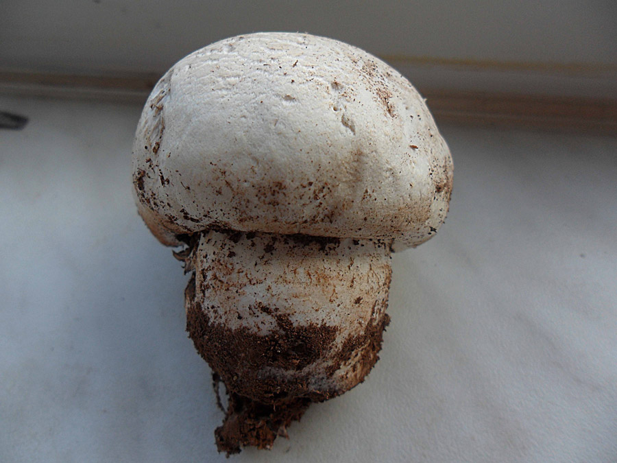 Hut : weißlich , grobschuppig , bis 12cm breit , halbkugelig. Hutrand etwas behabgen. Im Schnitt langsam rötend.