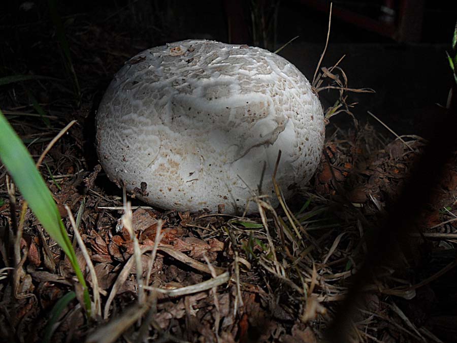 Hut : weißlich , grobschuppig , bis 12cm breit , halbkugelig. Hutrand etwas behabgen. Im Schnitt langsam rötend.