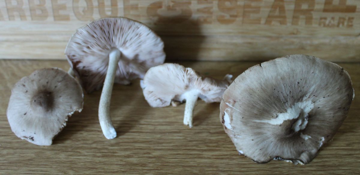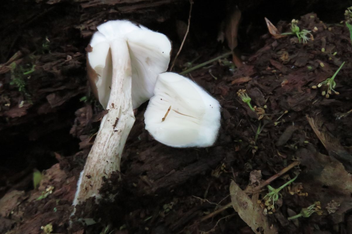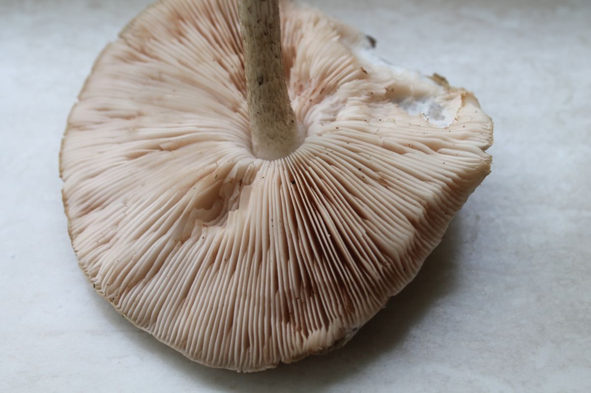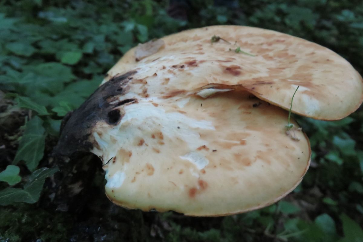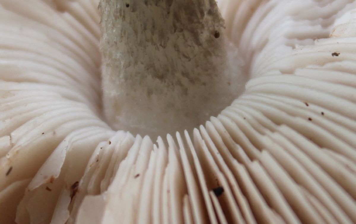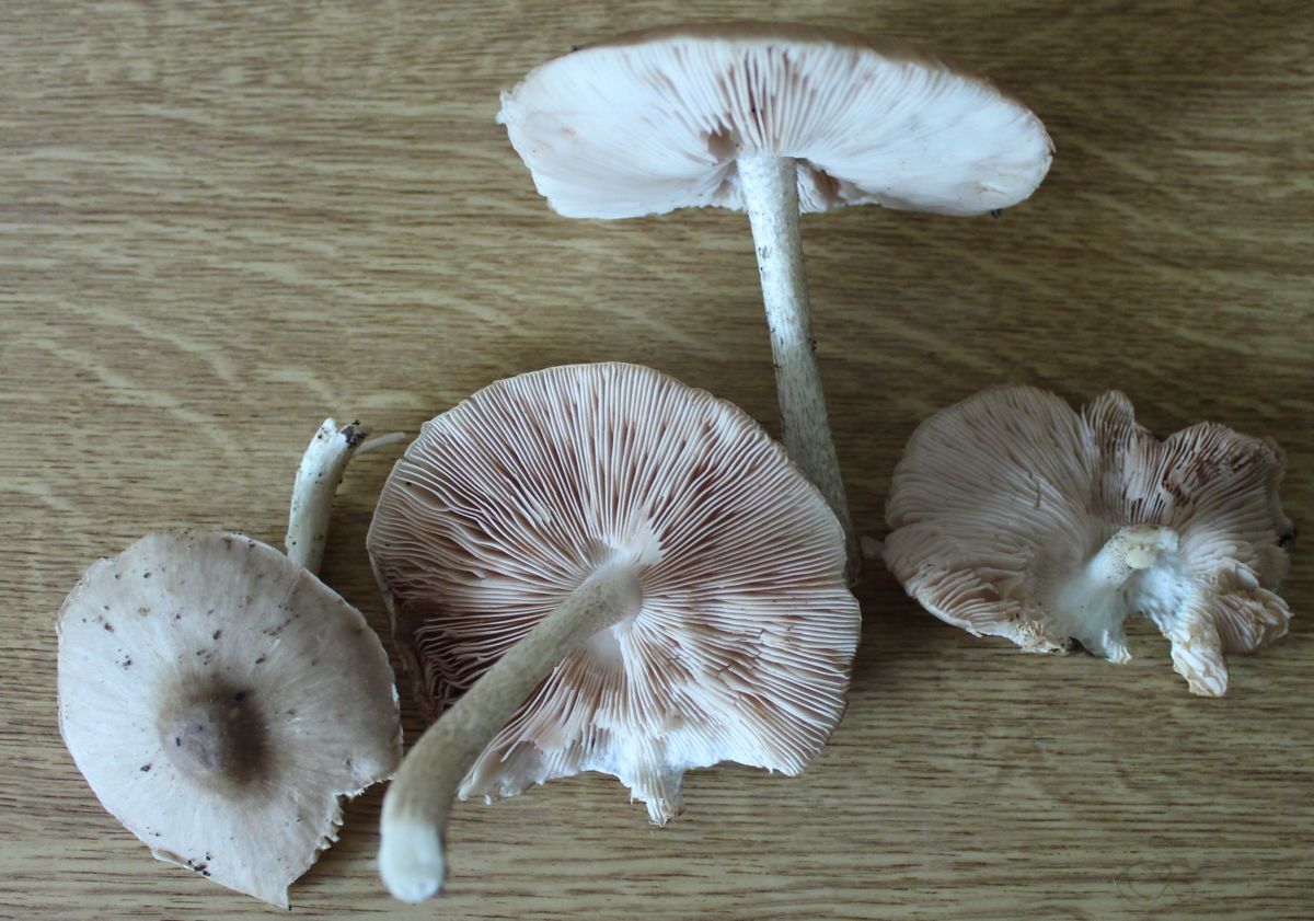 Die wenigen Lamellenpilze mit Stiel und Hut! Weiße Lamellen. Geruch unbedeutend.