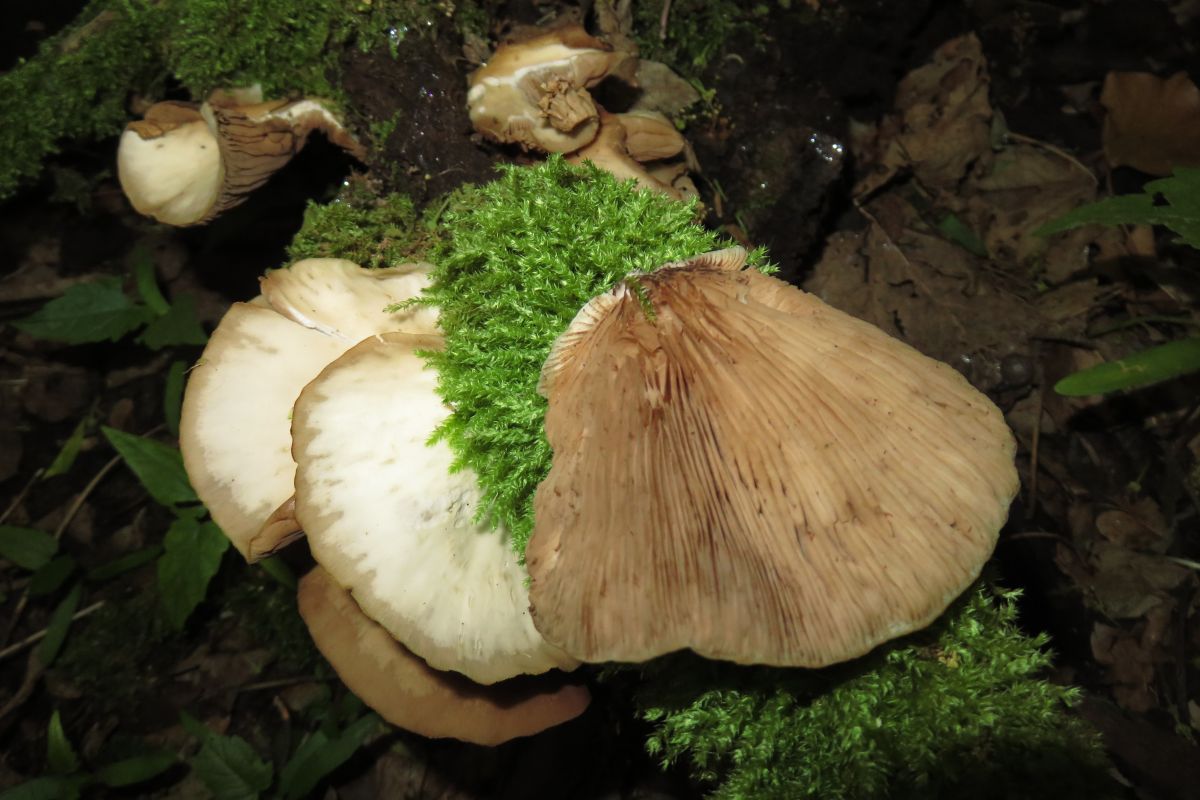 Seltsame Lamellenpilze ohne den ausgeprägten Stiel, irgendwie an die Austernpilze erinnernd... Geruch: pilzig - besser kann ich es leider nicht beschreiben.
