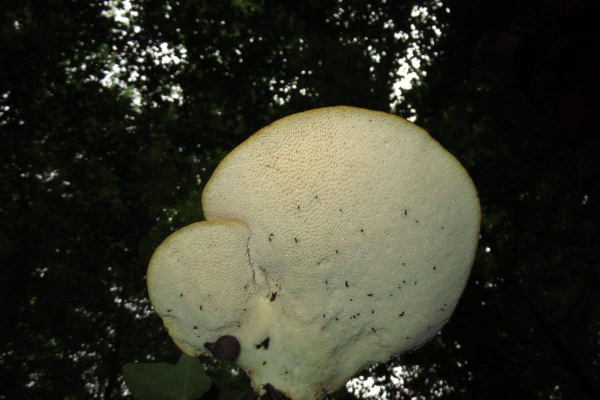 Das soll wohl der Schuppiger Stielporling sein! Hut leicht schuppig. Poren weiß. Stielbasis schwarz. Geruch: eindeutig mehlig/gurkenartig, etwa wie ein Maipilz aber intensiver!