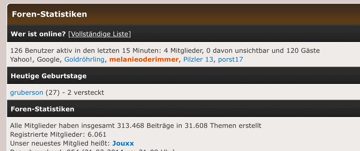 Bei mir herrscht das absolute Chaos. Seit gestern, vllt auch vorgestern bekomme ich keine "Neuen Beiträge" mehr angezeigt. Ich konnte noch nie sehen, wer gerade online ist oder wer Geburtstag hat. Dabei habe ich mir nie was gedacht. Aber jetzt? Lade ich neu, passiert gar nichts an Veränderungen. Unter "Heutige Beiträge" erscheint alles zusammen. Alte Beiträge ........neue. Das verstehe ich überhaupt nicht mehr.