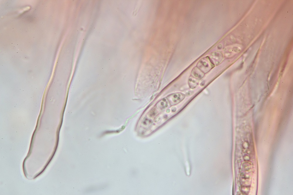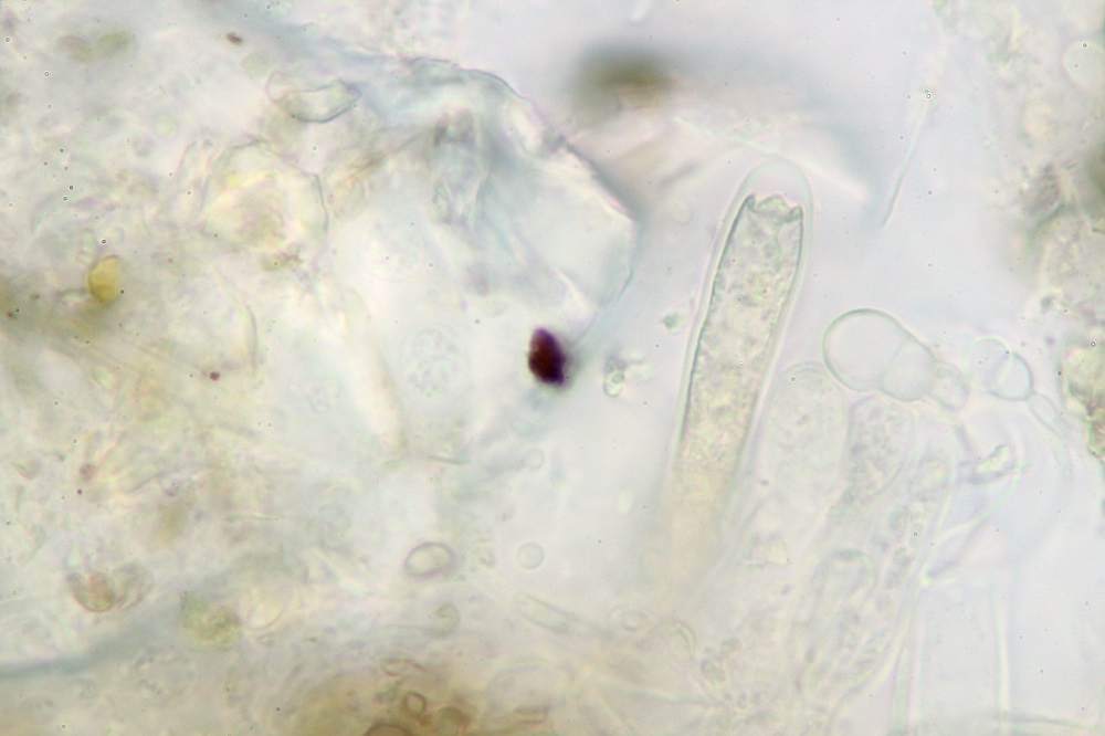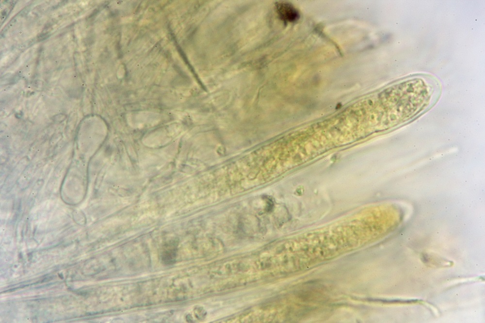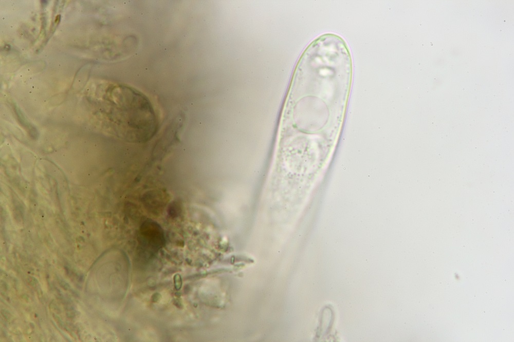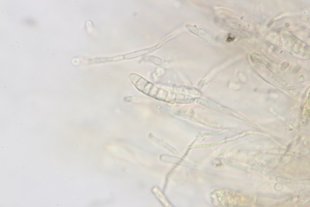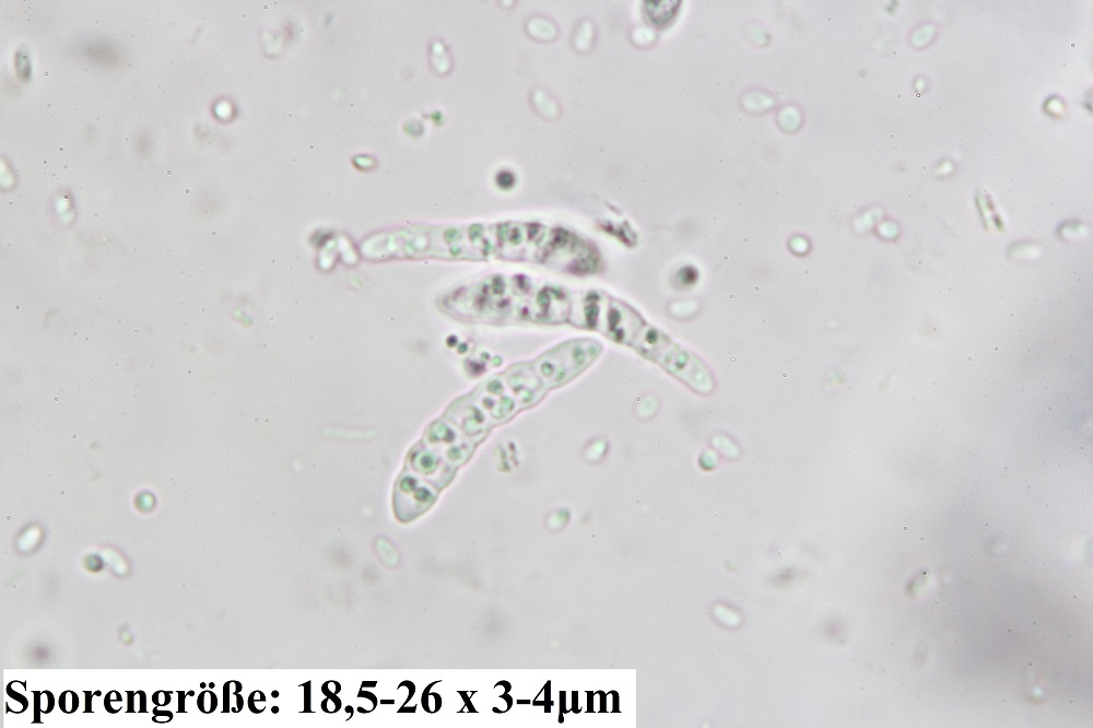 Das interessante an diesem Pilz ist, dass dieser Makroskopisch wie Claussenomyces prassinulus aussieht, aber Mikroskopisch größere Sporen hat.
