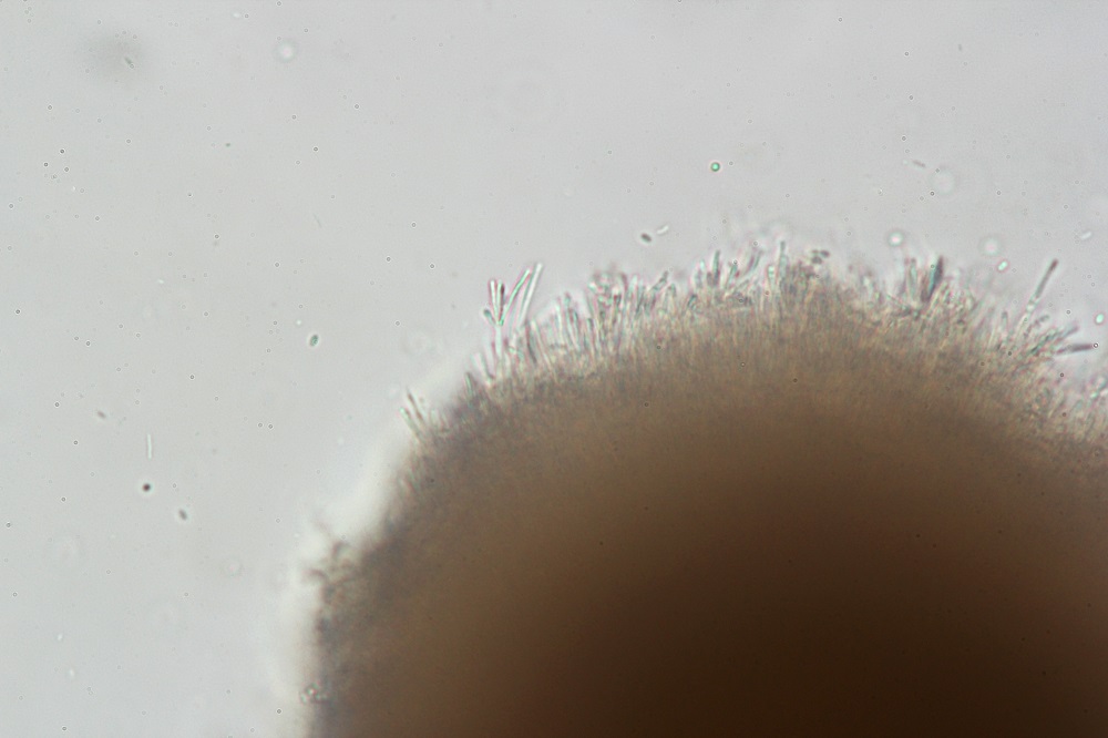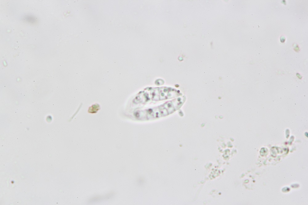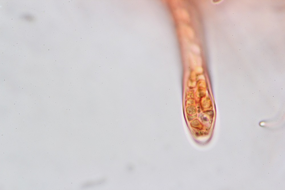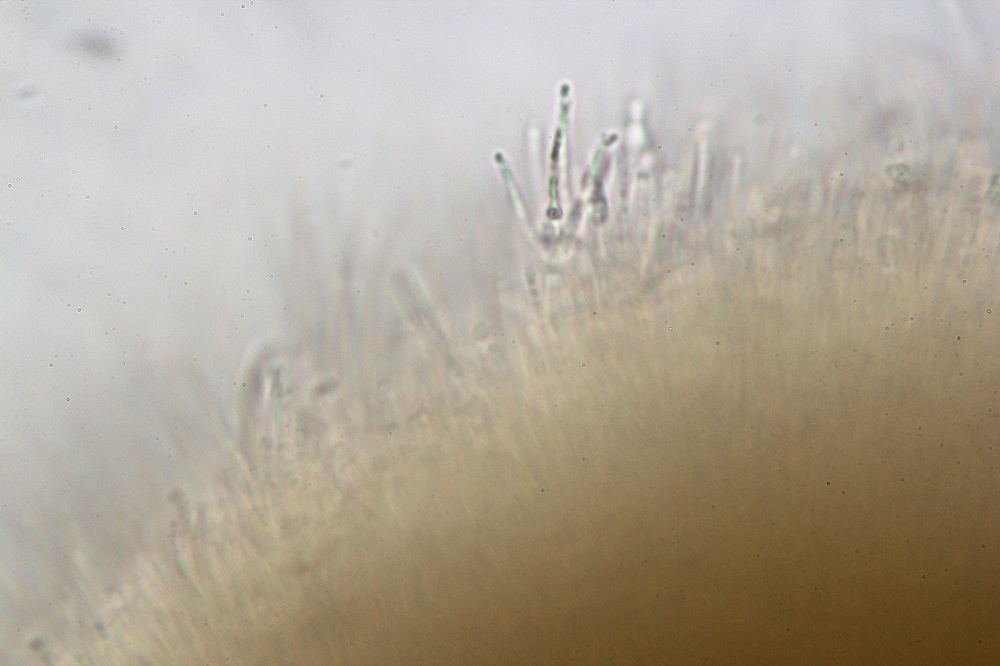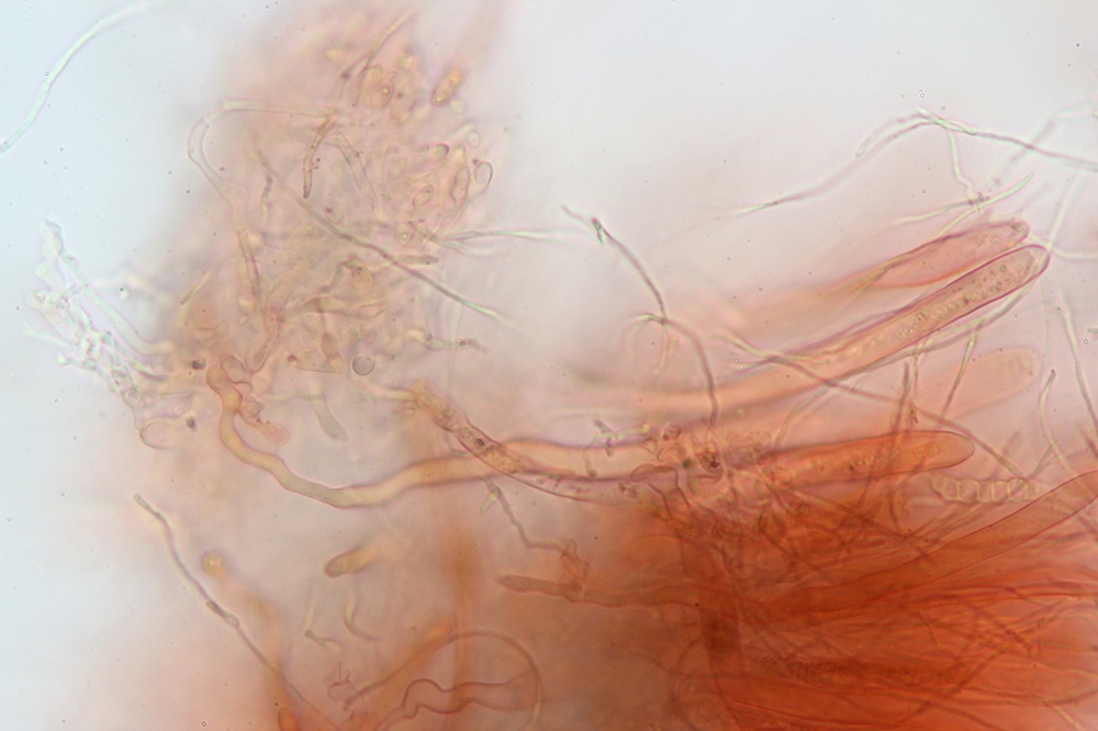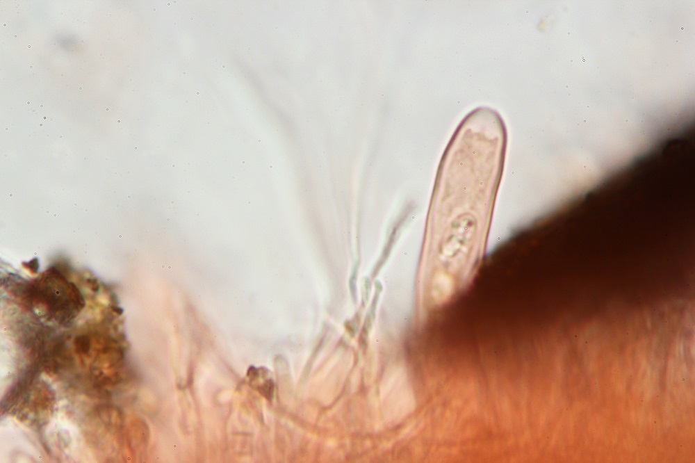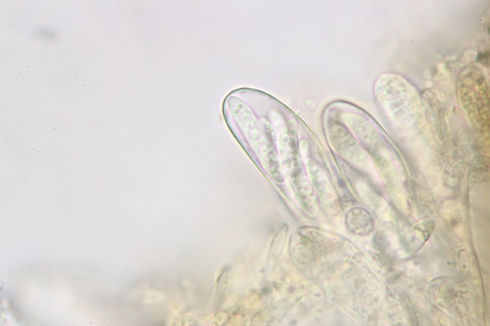 Das interessante an diesem Pilz ist, dass dieser Makroskopisch wie Claussenomyces prassinulus aussieht, aber Mikroskopisch größere Sporen hat.