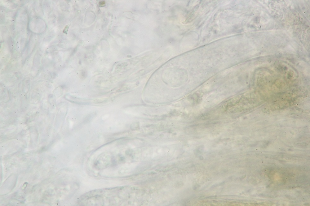 Das interessante an diesem Pilz ist, dass dieser Makroskopisch wie Claussenomyces prassinulus aussieht, aber Mikroskopisch größere Sporen hat.