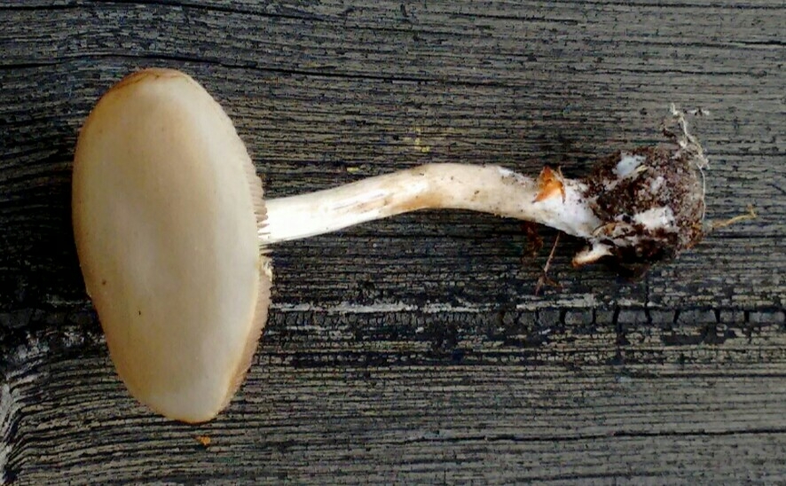 Farbe: weissbraun mit hellbrauner Basis und hellerer Spitze, an der Basis wurzelnd