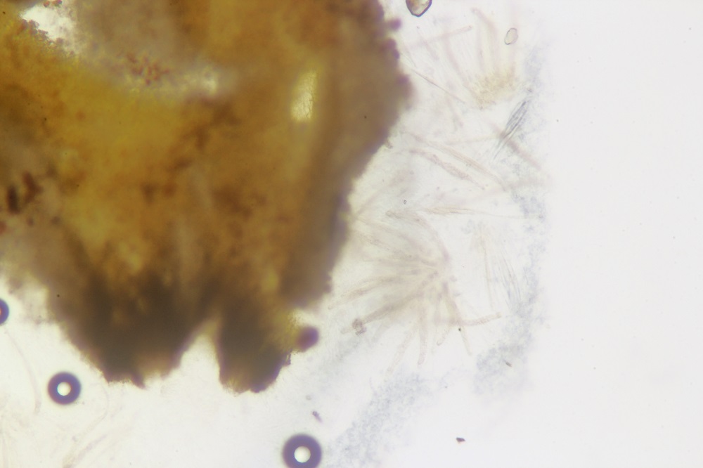 Denn ich hätte niemals gedacht, dass dieser Pilz Türkise Teile/Fremdkörper/Chemikalien absondert, die dann auch noch in der Lage sind die Paraphysen Türkis zu färben