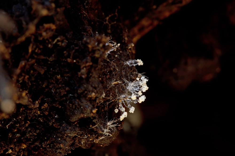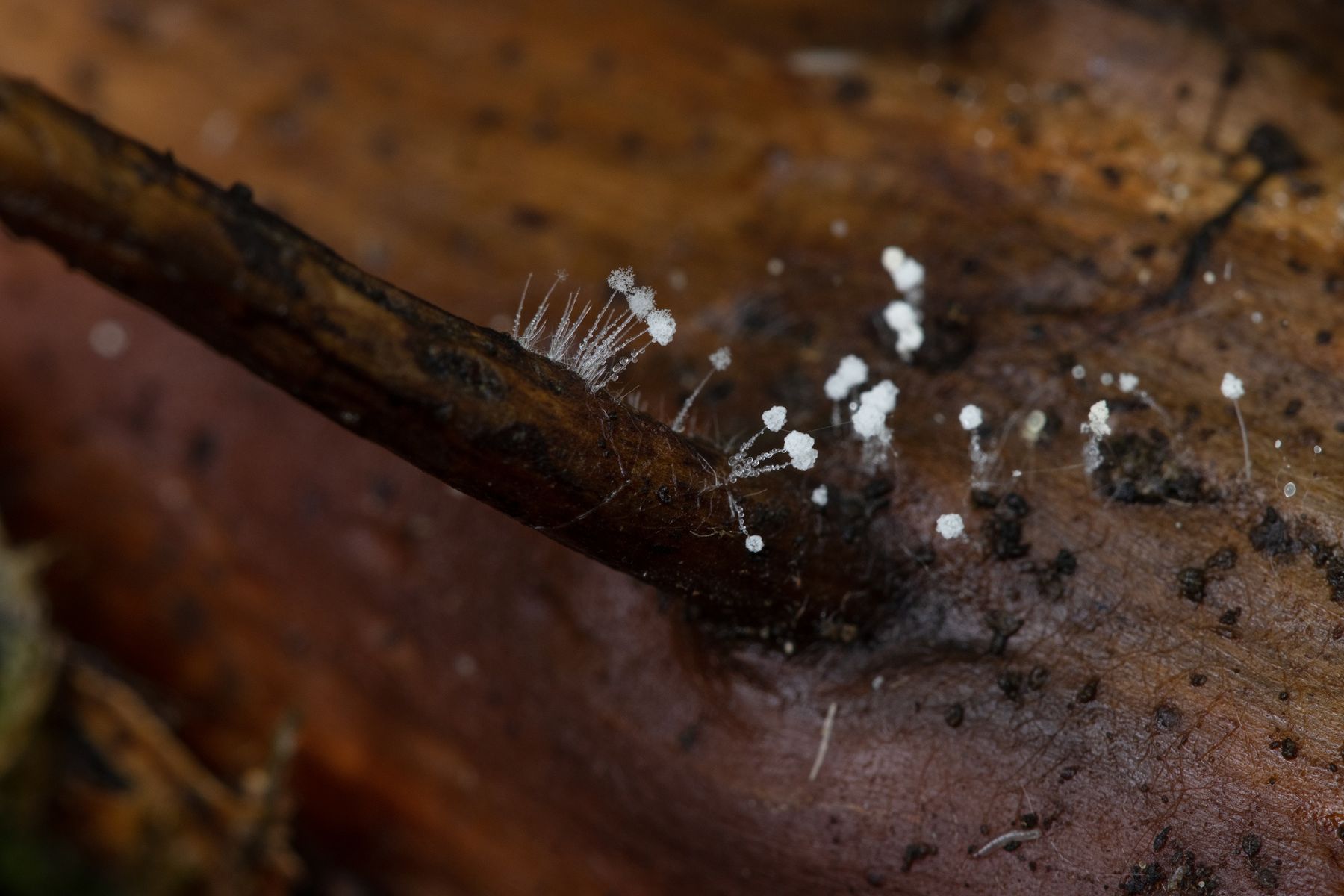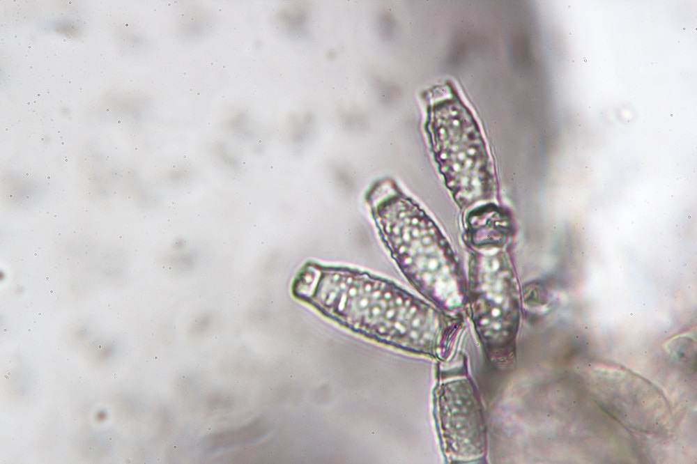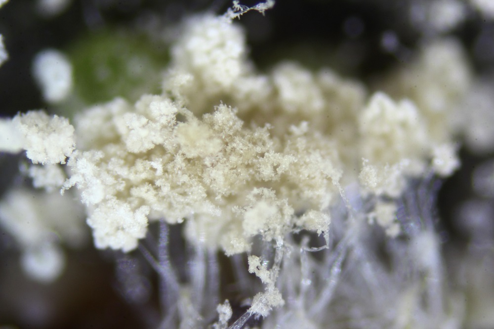 Vor 3 Tagen fand ich ein Schleimpilzartiges Gebilde an einer Wurzel von einem Eichen/Buchenbaumstumpf, dass sich unter dem Mikroskop wohl als Amblyosporium sp. entpuppt hat.