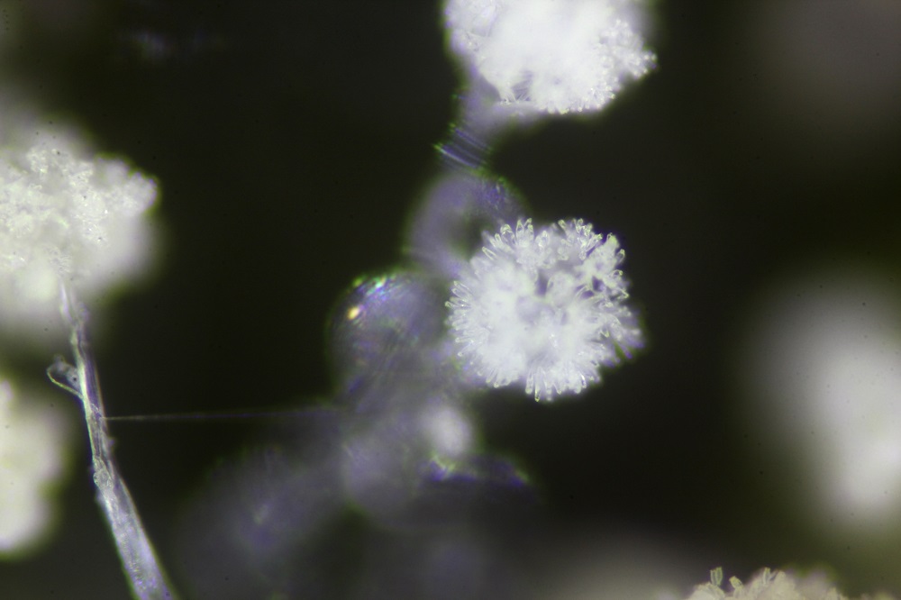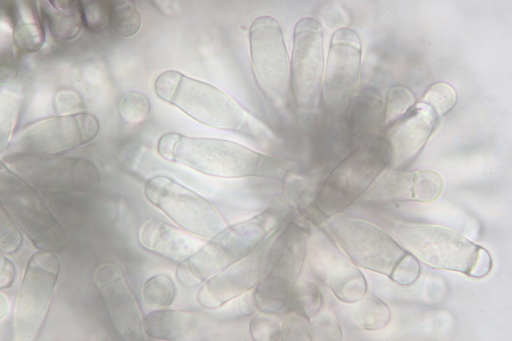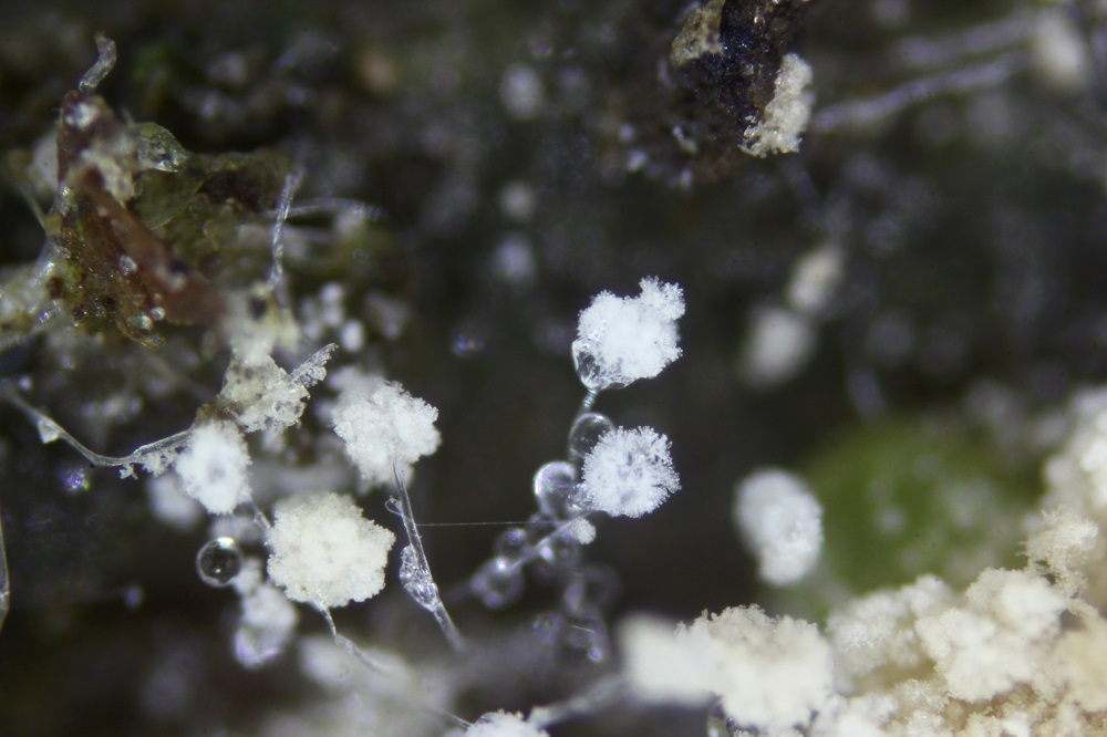 Vor 3 Tagen fand ich ein Schleimpilzartiges Gebilde an einer Wurzel von einem Eichen/Buchenbaumstumpf, dass sich unter dem Mikroskop wohl als Amblyosporium sp. entpuppt hat.