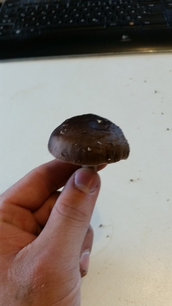 Der Hut ist etwa 5 cm breit, daneben steht aber noch ein etwas größerer Pilz.