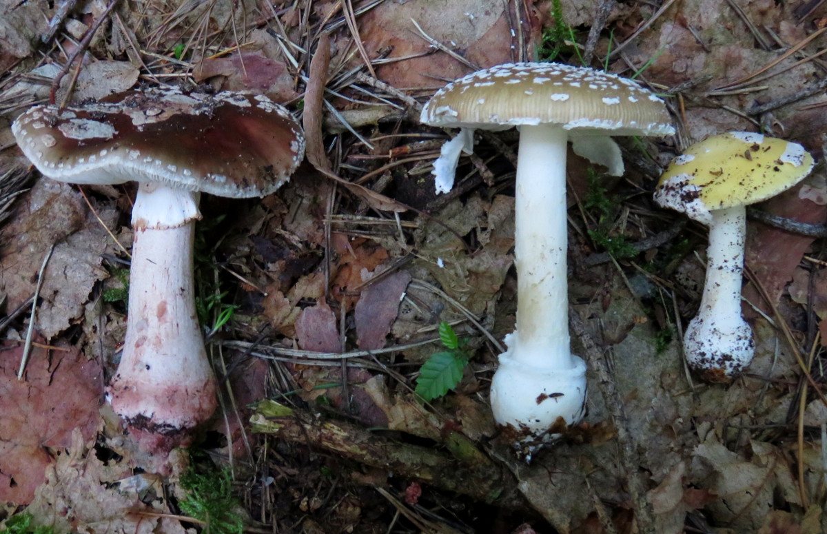 Ein Bild mit der übrigen Verwandschaft müsste aber sein ;) Von links nach rechts: Perlpilz, Panterpilz (?), Narzissengelber Wulstling (?)