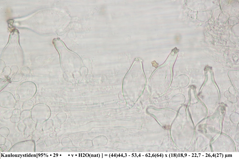 Der Geruch ist spermatisch, die Kaulozystiden sind am Lamellenansatz, Stielmitte und Stielbasis reichlich vorhanden.