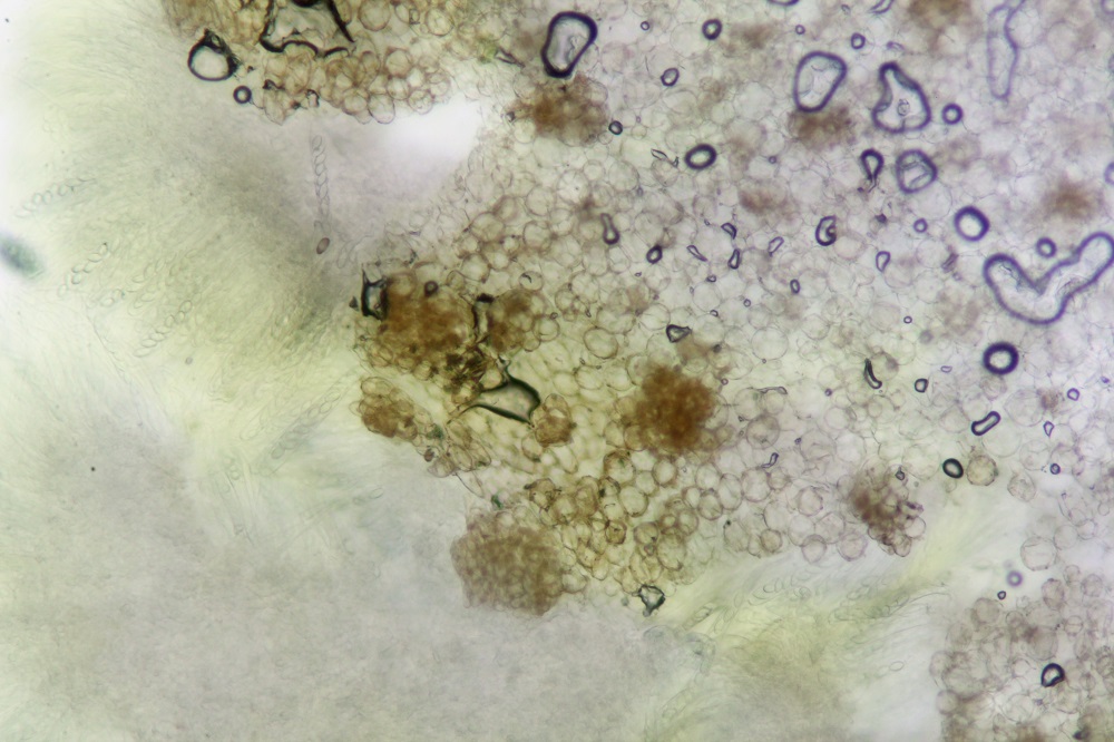 Falls die Zeit da ist, dann schaue ich mir den Rest der Probe an, aber momentan liegen zu viele Proben auf dem Tisch, davon Unmengen Inocyben, Pezizas und eine rundsporige Scutellinia