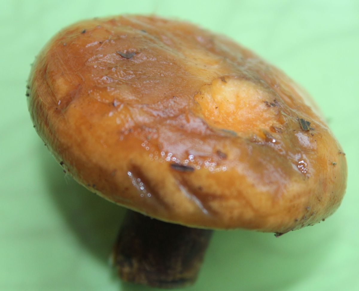 3) Welcher Schmierröhrling ist das? Zuerst dachte ich an den Butterpilz. Aber das Fleisch blaut schnell im Schnitt - siehe Foto - und blasst kurz danach aus.