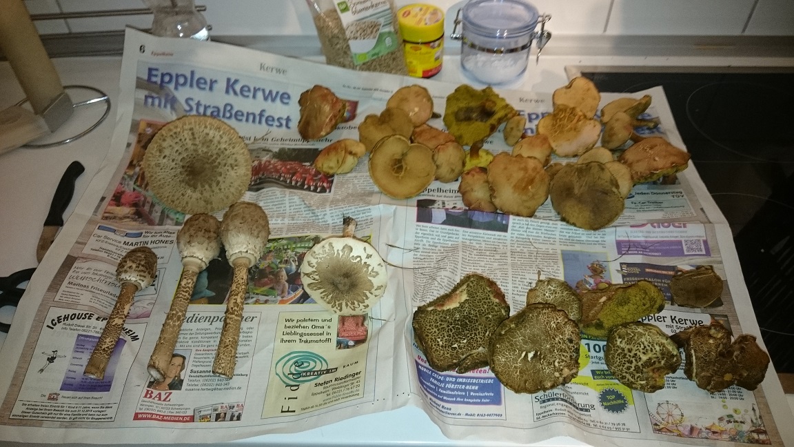 und hier die gesamte Ausbeute, unter anderem ein Zitzenschirmling und Rotfüße