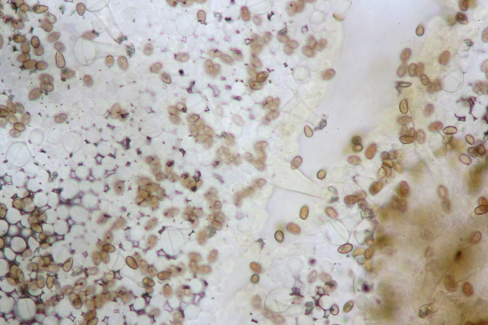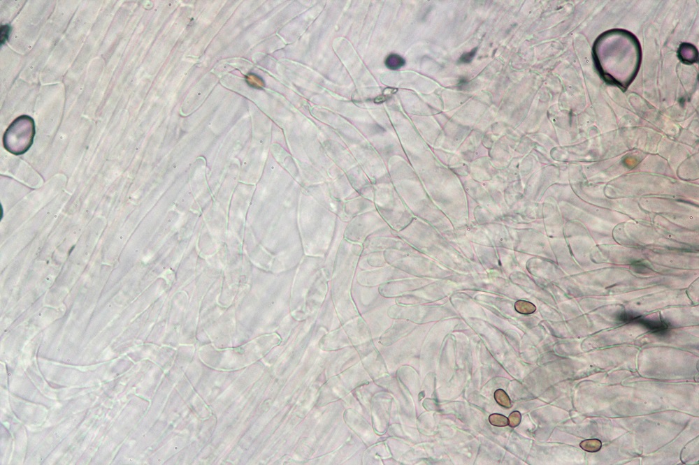 • Ja, das meinte ich, bloß seh ich irgendwievon den Zystiden. Also, ich meine zwar zu erkennen, dass es eine Färbung gibt, aber so erlaubt das leider keine nähere Aussage.