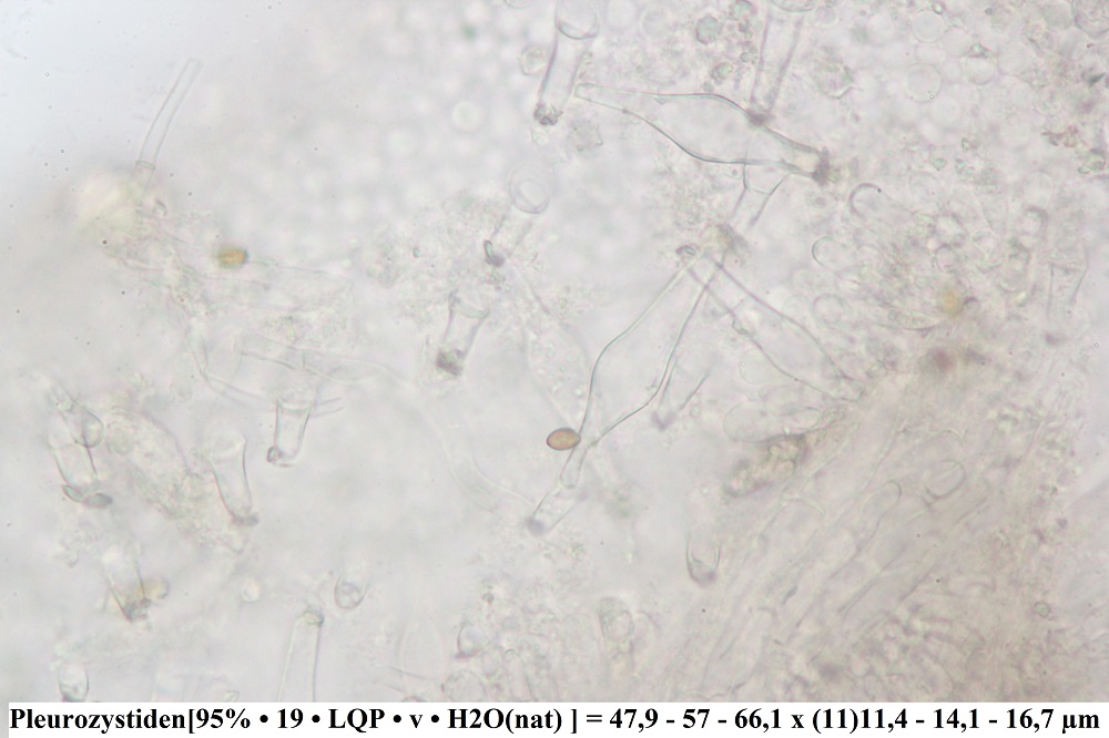 Kaulozystiden sind am Lamellenansatz und Stielmitte vorhanden, ich meine auch welche an der Stielbasis gesehen zu haben, aber sicher bin ich mir da nicht.