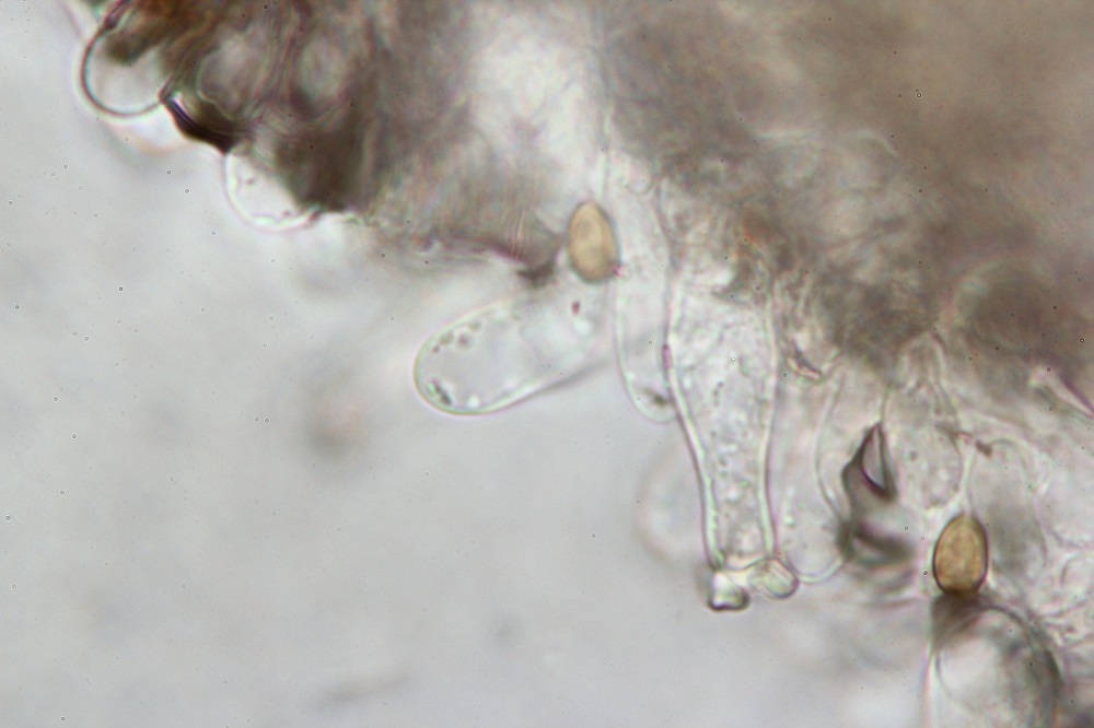 Dennoch sieht das Pilzlein für mich so aus, als ob es sich um einen Vertreter der Gausapatinae handelt. Dann müsste mit Zugabe von KOH eine Färbung der Zystiden zu sehen sein.