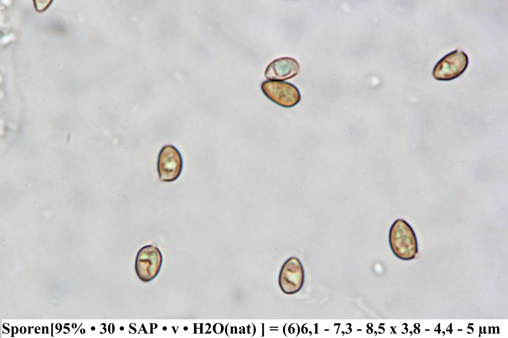 • Grüß dich, Thorben, danke für die Hinweis-Mail: Also da gibt's nur einen Fruchtkörper, der auch noch nass ist, und die Mikros sind nur mit Wasser mikroskopiert und nicht mit KOH, so dass man keine Reaktion beurteilen kann - und außerdem sind die Mikros, nach den Fotos zu schließen, nicht unbedingt sehr aussagekräftig ..... Dennoch sieht das Pilzlein für mich so aus, als ob es sich um einen Vertreter der Gausapatinae handelt. Dann müsste mit Zugabe von KOH eine Färbung der Zystiden zu sehen sein.