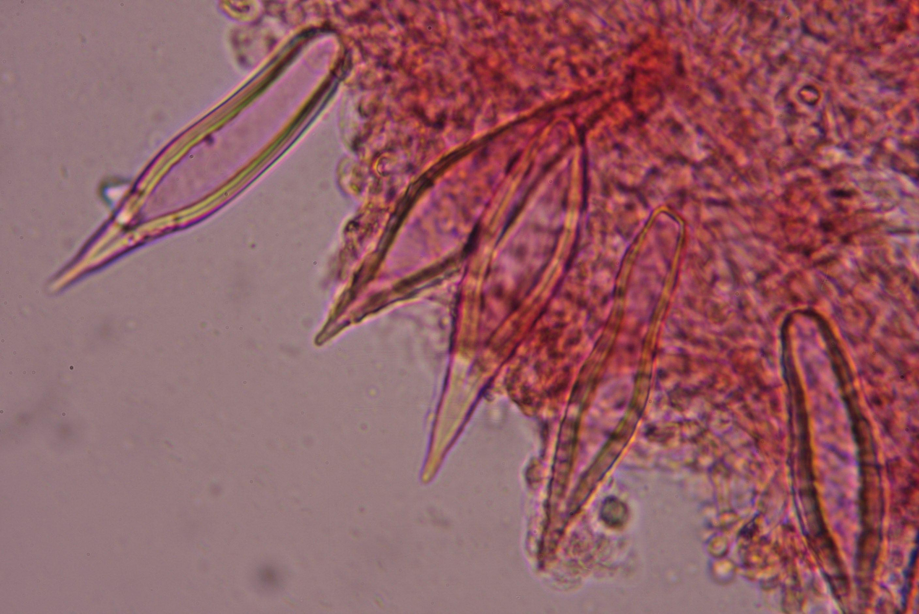 -[font="Times New Roman"] [/font]Metuloide in HDS äussert selten. Bei zwei Präparaten gar keine. Ev. nur mit Mikroskopiernadel eingeschleppt?