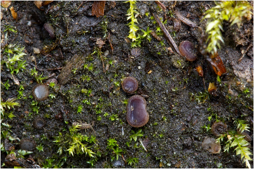 Ich habe dem Pilz jetzt dem Namen Peziza gerardii gegeben, auch wenn meine Sporenmaße etwas abweicht und ich kein linienförmiges Ornament gesehen hatte.