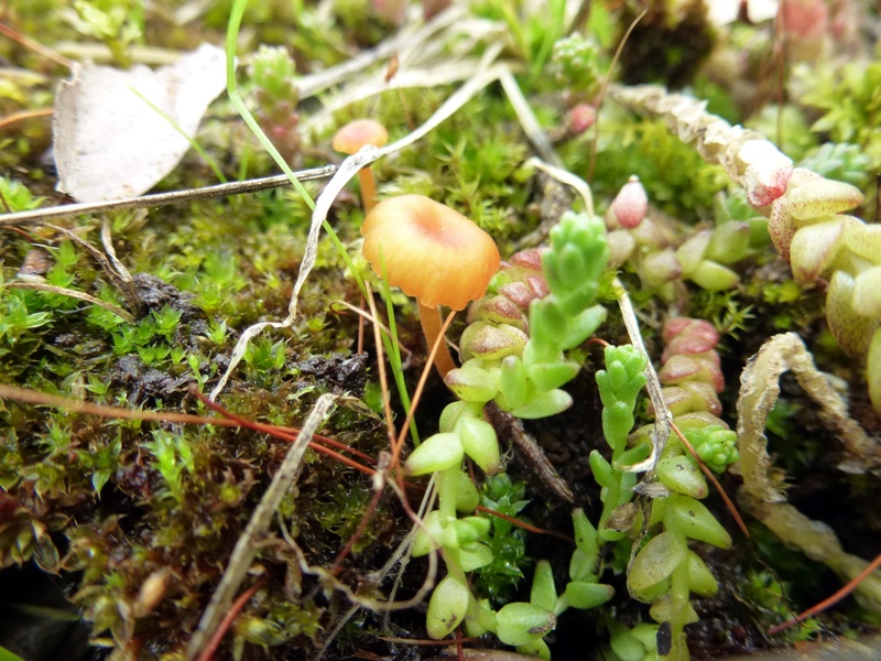 Mal nicht in, sondern auf der Garage. Da habe ich vor einigen Jahren ein paar Pflänzchen Sedum acre ausgesetzt. Diverse Moose haben sich dazugesellt. Immer wieder mal habe ich dort in der Hoffnung auf ein Moosbecherchen nachgeschaut. Heute nun der mykologische Erstfund für mein Garagendach.