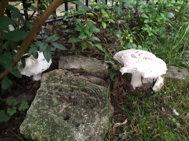 bei uns wuchern noch einige Pilze, die ich nicht kenne. Könntet ihr mir wohl sagen, um was es sich dabei handelt, damit ich wegen Kleinkinds entweder unbesorgt sein oder doch noch einmal sehr achtsam durch den Garten gehen muss?