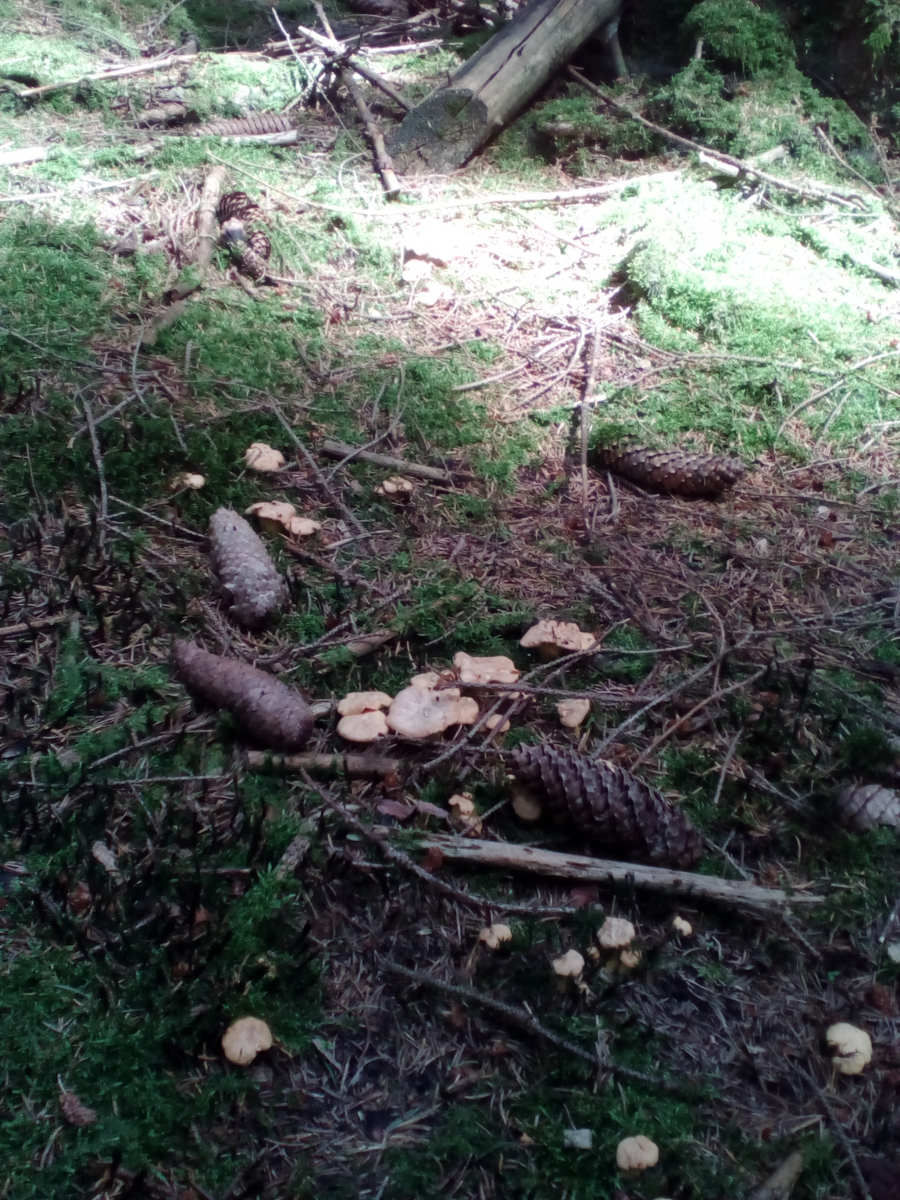 Heute war ich besonders froh darüber, im Ruhrpott zu wohnen und den Erbsenstreuling zu meinen Lieblingspilzen zu zählen. Alles, was so an Champignons und Täublingen den Kopf aus der Erde steckte, wurde von Heerscharen von Schnecken gnadenlos weggefressen. Aber von den Erbsenstreulingen lassen sie zum Glück die Finger. In einer halben Stunde war der Beutel voll ![]()