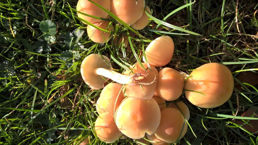 Der Wald war voller Pilze, hauptsächlich falsche Pfifferlinge, Schopftintlinge, Nebelkappen und Felder von winzigen kleinen weißen Pilzchen.