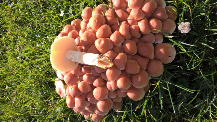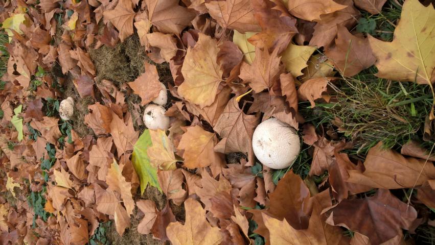 Der Wald war voller Pilze, hauptsächlich falsche Pfifferlinge, Schopftintlinge, Nebelkappen und Felder von winzigen kleinen weißen Pilzchen.