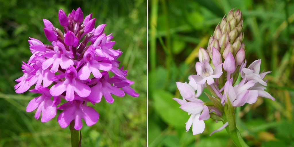 Noch mal Pyramiden-Hundswurz und Hummel-Ragwurz zusammen