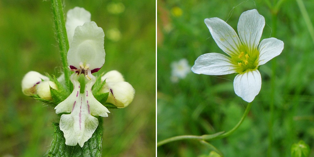 Zwei weiße Blüten, die ich schon kannte: der Aufrechte Ziest, Stachys recta und der Purgier-Lein, Linum catharticum