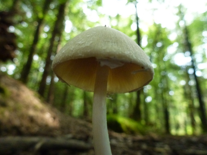 Exemplarisch für die Pilze die sich gerade anfangen zu zeigen. Ich vermute, dass dies ein Scheidenstreifling sein könnte