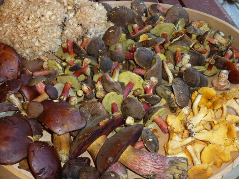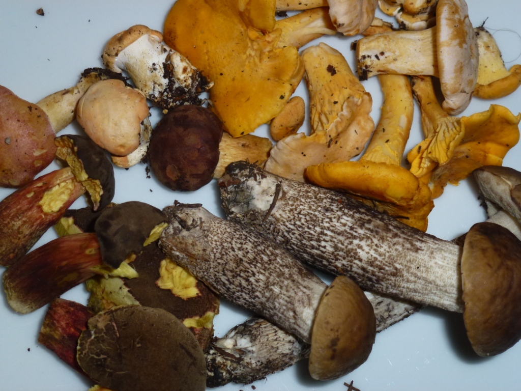 Bei einem wunderschönen Spaziergang beim Dechsendorfer Weiher füllte sich der Korb zusehends: Maronen, Rotfuß-Röhrlinge, Flockenstielige Hexenröhrlinge, eine schöne Krause Glucke, ein paar Pfifferlinge, leider nur einen Reizker, Goldröhrlinge. Außerdem gab es viele verschiedene Täublinge, noch mehr kleine Gallenröhrlinge, viele junge Perlpilze und natürlich wieder viele Pilze die ich nicht kenne und vergessen habe ich jetzt bestimmt auch noch einige :)