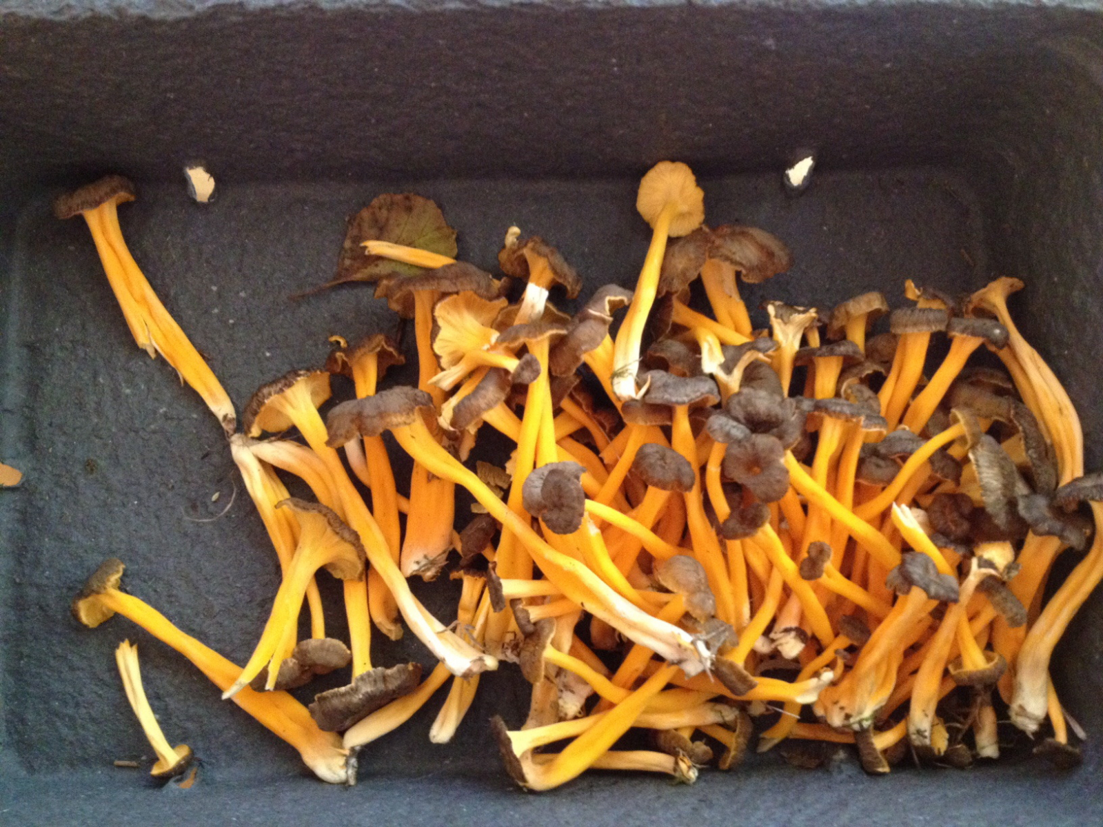 10 km nördlich war dann schon mehr los. Da standen die Pfifferlinge und Steinpilze (bis auf einen alle zerfressen) sogar direkt am Weg.