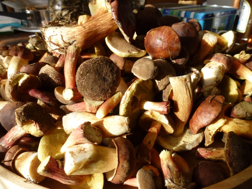 Bei einem wunderschönen Spaziergang beim Dechsendorfer Weiher füllte sich der Korb zusehends: Maronen, Rotfuß-Röhrlinge, Flockenstielige Hexenröhrlinge, eine schöne Krause Glucke, ein paar Pfifferlinge, leider nur einen Reizker, Goldröhrlinge. Außerdem gab es viele verschiedene Täublinge, noch mehr kleine Gallenröhrlinge, viele junge Perlpilze und natürlich wieder viele Pilze die ich nicht kenne und vergessen habe ich jetzt bestimmt auch noch einige :)