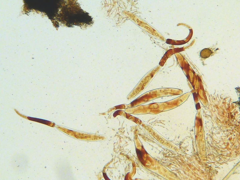 Auffallend sind die wurmartigen Fortsätze an der Ascuswurzel, wie auch die starke Jodreaktion. Die Sporen sind 5 oder 6-fach septiert.