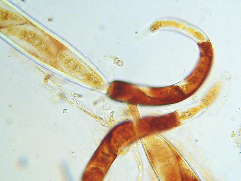 Auffallend sind die wurmartigen Fortsätze an der Ascuswurzel, wie auch die starke Jodreaktion. Die Sporen sind 5 oder 6-fach septiert.