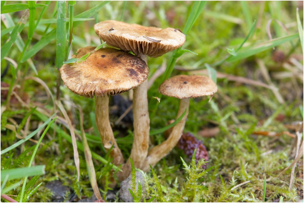 • Hallo, alle, zum einen, lieber Thorben, diese Inocybe ist eine Mallocybe und zwar aus der dulcamara-Gruppe - also dulcamara agg. - ganz sicher nicht cookei oder quietiodor: bei beiden ist die Hutfarbe gelb, die Hutform ist eine andere, der Stiel schaut anders aus und die Stielbasis ist knollig.