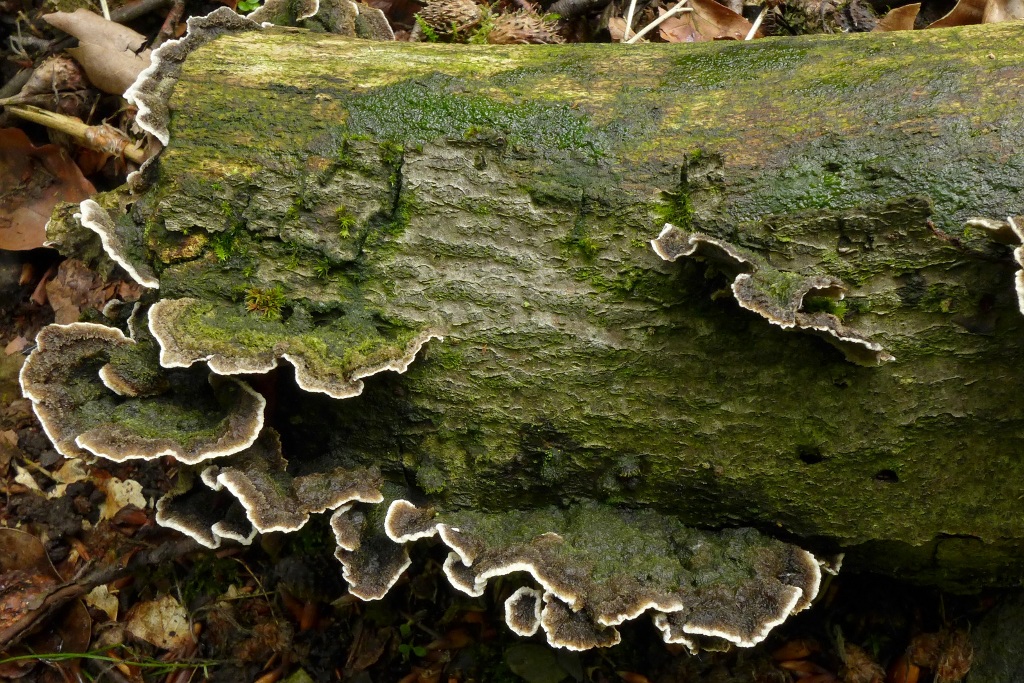 Durch die zottige und dunkle Hutoberseite habe ich erst kurz an T. versicolor gedacht. Nach dem Entfernen einiger "Hüte" kam dann die Ernüchterung. Ich hab zu Hause GPBW gewälzt und es kam nix bei rum. X(