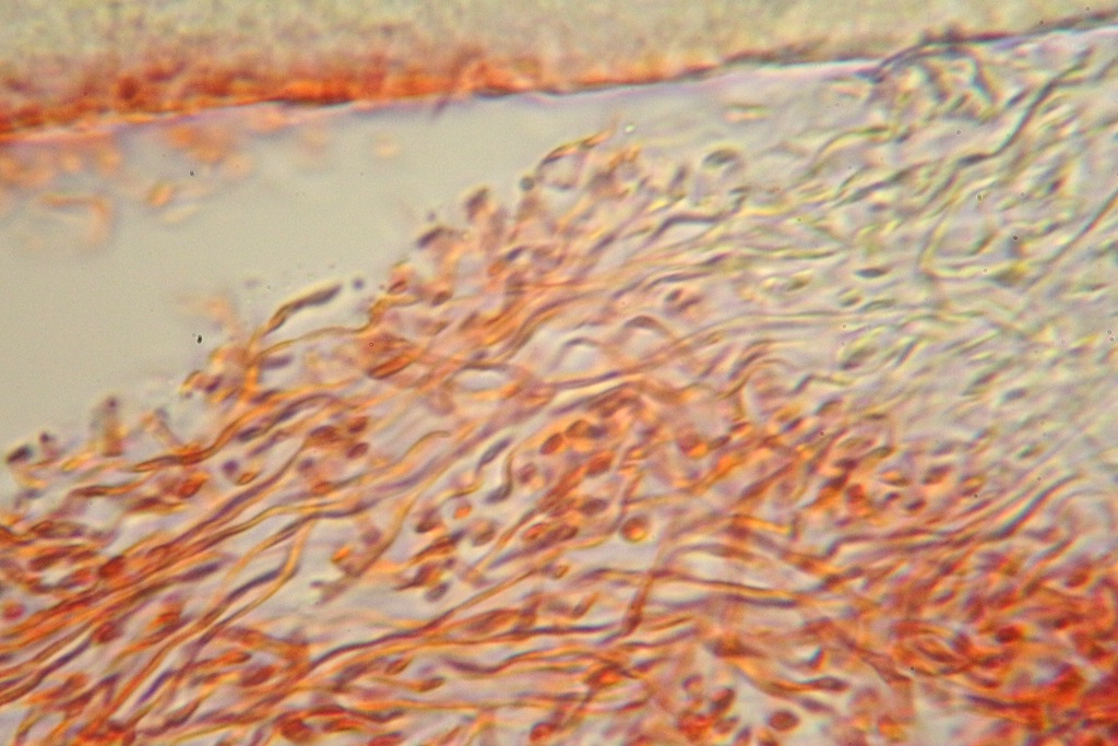 Lamellen: engstehend, keine Zwischenlamellen festgestellt, 3,5 cm lang, ca. 2-3mm breit, Lamellenscheiden glatt